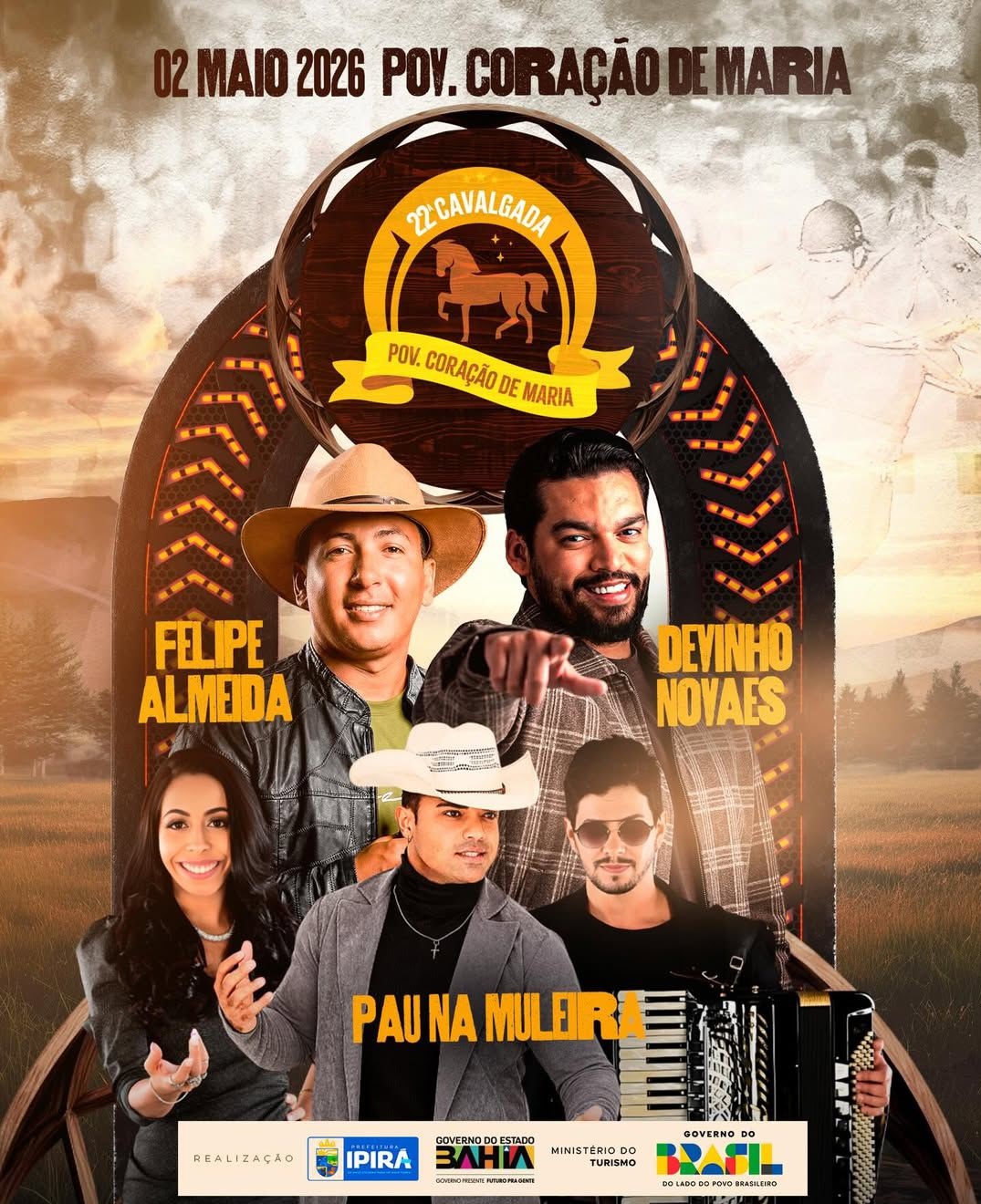 A tradicional Cavalgada do povoado de Coração de Maria, em Ipirá, já tem data marcada e promete movimentar a região com uma programação especial. A 22ª edição do evento será realizada no dia 2 de maio de 2026, reunindo cavaleiros, amazonas e o público em geral em um momento de celebração da cultura nordestina.