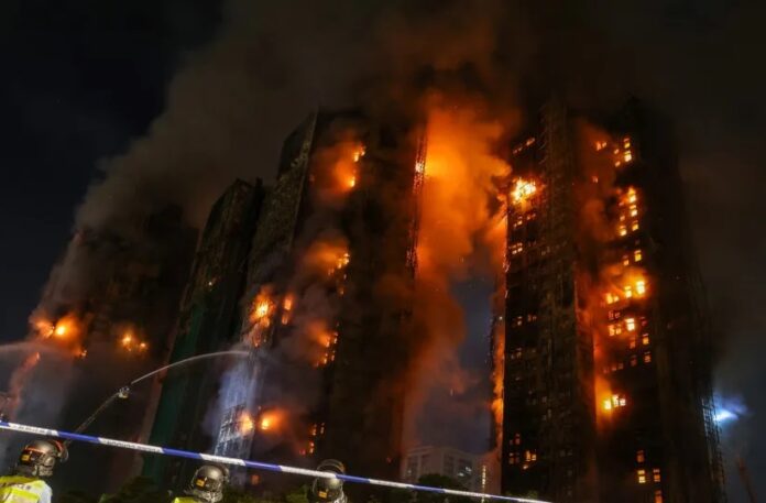 Na quinta, o Corpo de Bombeiros disse ter recebido relatos de que um incêndio havia começado em Wang Fuk Court, complexo habitacional composto por oito blocos e quase 2.000 unidades residenciais próximo à divisa do território autônomo chinês com o restante da China. O complexo faz parte de um programa de subsídios para casa própria do governo local e foi inaugurado em 1983.