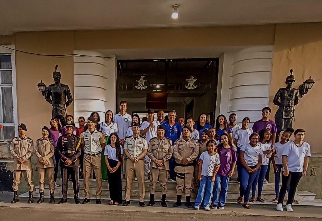 Durante o passeio, os estudantes conheceram de perto a estrutura da corporação, sua história, tradições e a rotina de formação dos futuros oficiais.