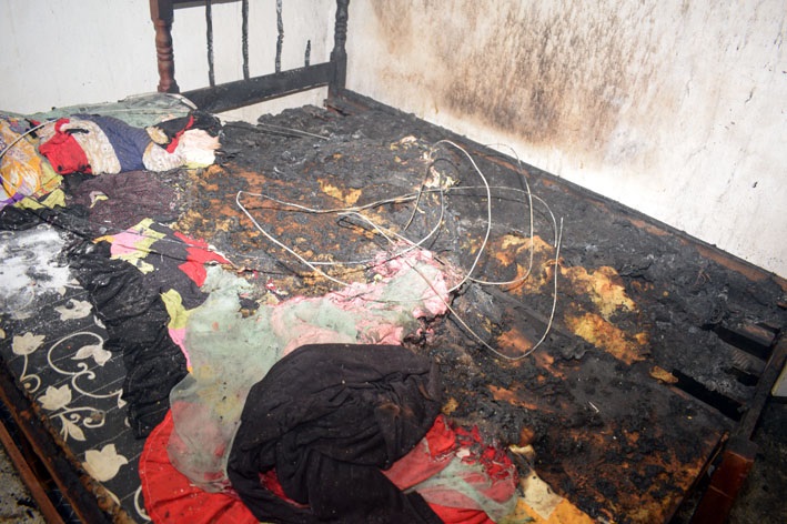 O incêndio começou pelo telhado e derreteu os fios elétricos em quase toda a residência. O calor foi tão intenso que chegou a derreter utensílios de alumínio guardados nos quartos, além de rachar paredes e estourar o piso.