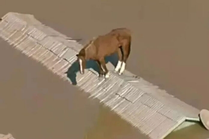 O equino foi resgatado depois de ficar ilhado no telhado de uma casa em meio às enchentes que atingiram a região. As equipes dos Bombeiros de São Paulo, que estavam no Sul em apoio às vítimas das chuvas, planejaram uma força-tarefa para resgatar o anima.