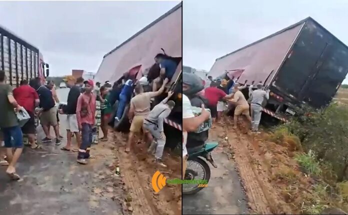 Apesar de o caminhão permanecer intacto e o condutor consciente, a situação rapidamente saiu do controle. Em vez de ajudar o motorista ou acionar as autoridades, os saqueadores agiram de forma organizada, retirando grande parte da carga antes da chegada da polícia.