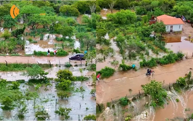 O cenário é de fartura hídrica: aguadas cheias e, em muitos pontos, transbordando. A realidade tem se repetido em diversas localidades da região, refletindo o bom volume de chuva registrado nos últimos dias.