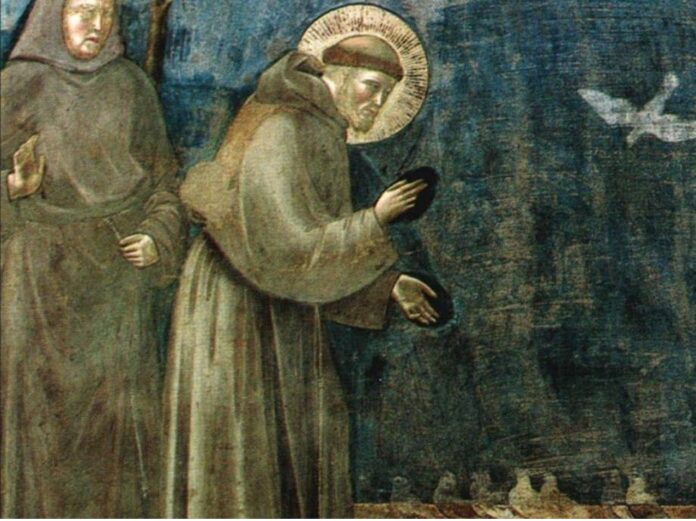 São Francisco de Assis (batizado como Giovanni di Pietro di Bernardone; Assis, foi um frade católico nascido na atual Itália. Depois de uma juventude irrequieta e mundana, voltou-se para uma vida religiosa de completa pobreza, fundando a ordem mendicante dos Frades Menores, mais conhecidos como Franciscanos, que renovaram o Catolicismo de seu tempo. Com o hábito da pregação itinerante, quando os religiosos de seu tempo costumavam fixar-se em mosteiros, e com sua crença de que o Evangelho devia ser seguido à risca, imitando-se a vida de Cristo, desenvolveu uma profunda identificação com os problemas de seus semelhantes e com a humanidade do próprio Cristo.