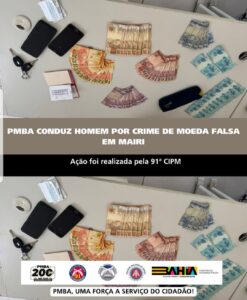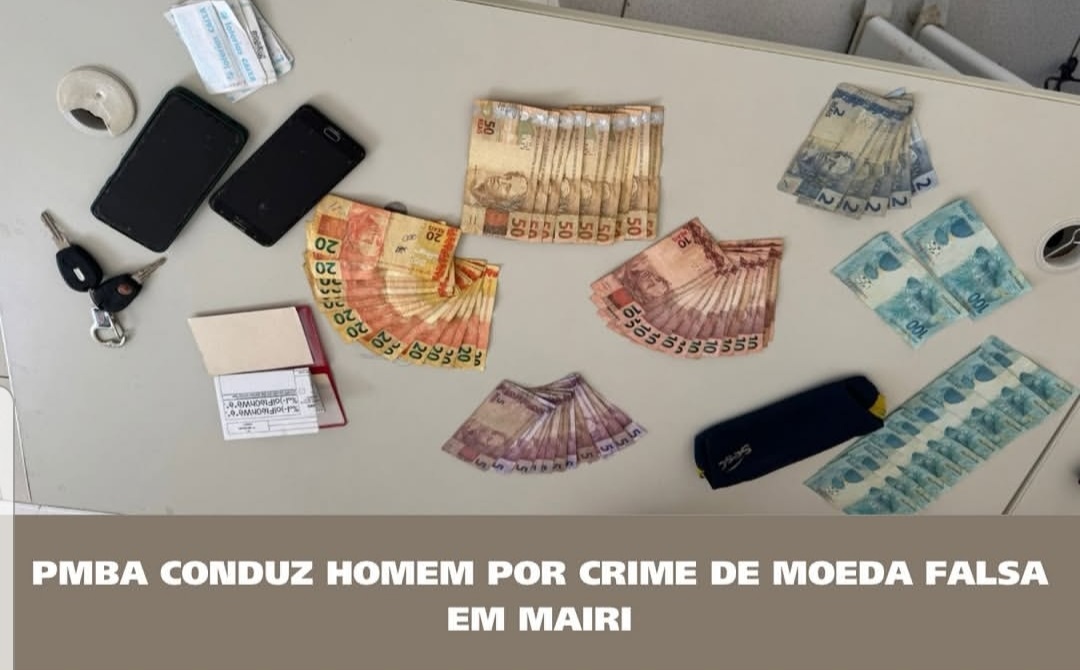 Na manhã desta segunda-feira 17, durante rondas realizadas na cidade de Mairi, uma guarnição da 91ª Companhia Independente da Polícia Militar (CIPM) foi acionada para averiguar uma suspeita de circulação de dinheiro falso no município.