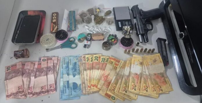 Durante a ação, os policiais apreenderam um revólver calibre 38, uma pistola Taurus PT 938 com numeração suprimida, munições deflagradas e intactas, porções de maconha, cocaína e crack, além de balança de precisão, dichavadores, filtros de seda, materiais utilizados para embalagem de drogas, dinheiro em espécie, moedas, aparelho celular e outros objetos.