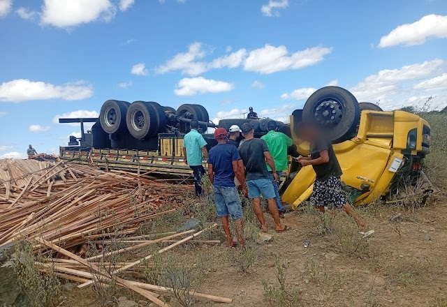Um caminhão carregado com madeiras capotou no início da tarde desta sexta-feira (17/04) por volta das 12h, na altura do km 268, da BR 235, no município de Curaçá, localizado no Norte Baiano. Conforme a PRF, o acidente resultou na morte do motorista de identidade ainda não informada.