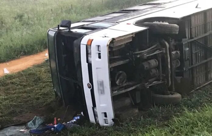 O ônibus capotou por uma área árida até parar às margens de um rio, segundo imagens da Panamericana Televisão, enquanto a picape ficou na lateral da curva com a cabine totalmente destruída.