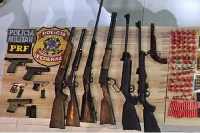 Ao chegar na localidade, o proprietário do imóvel negou que o procurado estaria no local, porém as equipes conseguiram confirmar a presença e, buscando capturá-lo, adentraram ao imóvel, quando localizaram diversas armas e munições que estavam à vista.