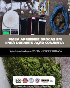 Na tarde desta quinta-feira (09), uma ação integrada entre a 98ª CIPM e a RONDESP Chapada resultou na apreensão de entorpecentes no bairro Novo Horizonte, em Ipirá.