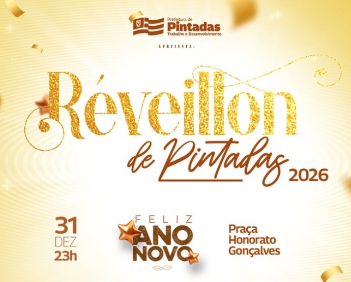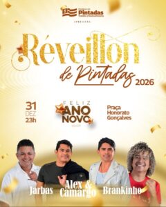 O município de Pintadas na Bacia do Jacuípe, vai celebrar a chegada de 2026 com paz, música boa e muita alegria. O evento acontecerá na Praça Honorato Gonçalves no centro da cidade a partir das 23h.