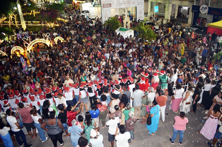 Na noite de segunda-feira (08), feriado municipal dedicado à padroeira de Baixa Grande, Nossa Senhora da Conceição, a Prefeitura realizou a inauguração da iluminação natalina no jardim da Praça Manoel Ribeiro Soares.