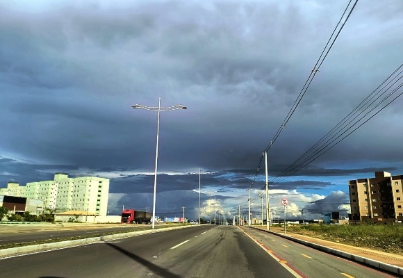 A previsão é de chuva entre 20 e 30 mm/h ou até 50 mm/dia, ventos intensos (40-60 km/h). Baixo risco de corte de energia elétrica, queda de galhos de árvores, alagamentos e de descargas elétricas.