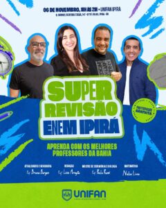 A “Super Revisão ENEM em Ipirá” promete ser um momento de aprendizado dinâmico, interação e motivação, reforçando o compromisso da UNIFAN em contribuir para a educação e o sucesso dos jovens baianos.