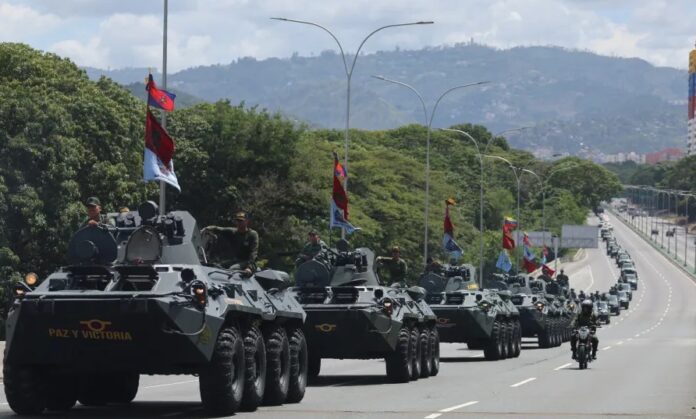 Na Venezuela, a emissora estatal VTV e o Exército divulgaram imagens das tropas em ação, além de mísseis antiaéreos Pechora de fabricação russa montados em caminhões.